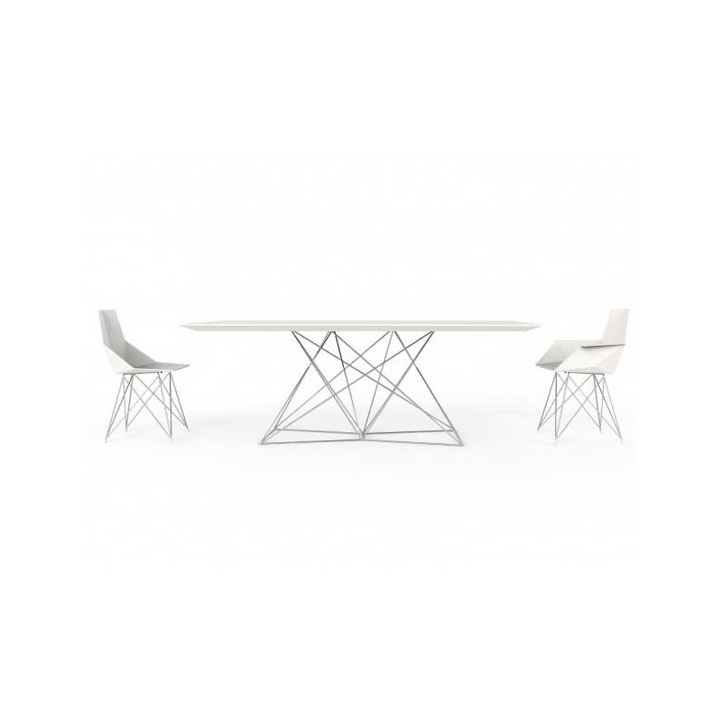 En découvrant la table Faz imaginée par Ramon Esteve pour la marque espagnole Vondom, on devine immédiatement que le créateur est passé par une école d'architecture. En effet, son piètement en acier inoxydable rappelle l'ossature de certains buildings en construction. Le plateau en HPL, idéal pour des séjours en extérieur, promet de grandes tablées tout en conservant une apparente légèreté rarement égalée.