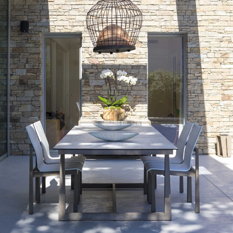 Dans un jardin ou sur une terrasse, la chaise Copenhague semble être la chaise idéale autour d'une table pour un repas de famille. Une chaise pleine de vie, qui est bousculée et parfois tachée. Les Jardins, marque made in France, a pensé à vous rendre la vie plus facile et a conçu une structure en Duratek durable avec une toile Batyline grise chinée facile d'entretien et résistante.