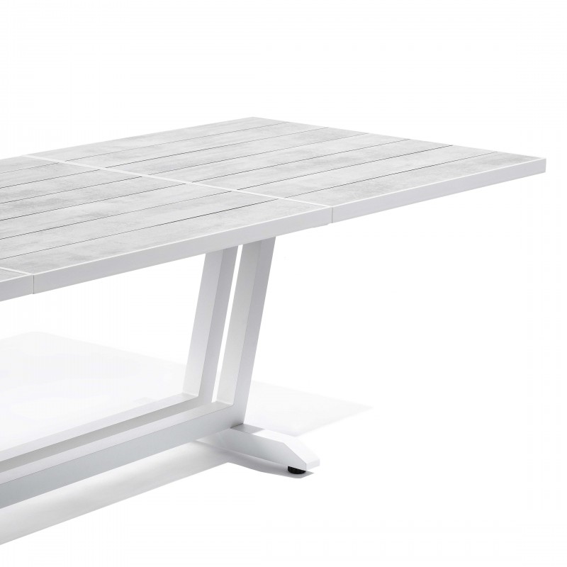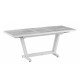 - Matériau : Structure en aluminium blanc et plateau latté en HPL finition béton ciré, système de rallonge par levier, pied central.
