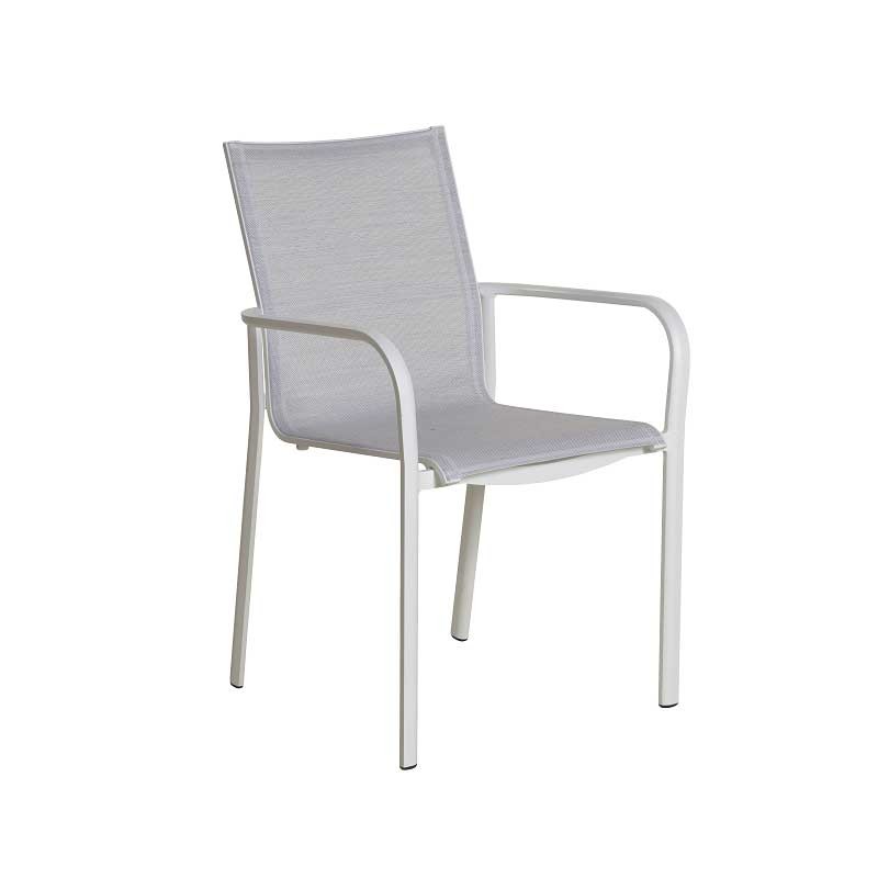 Le talentueux créateur reprend les codes et les douces lignes légèrement arrondies de la chaise Koton. Elle se voit ainsi parer de chaque côté de confortables accoudoirs en aluminium. Assise et dossier en toile Batyline Eden.