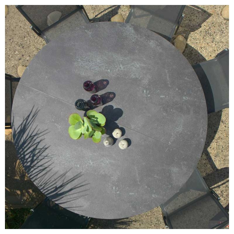 La table ronde Hegoa de la marque made in France Les Jardins a plus d'une astuce dans son sac et cache bien son jeu. Grâce au designer Jamie Durie vous avez la chance d'avoir une jolie table ronde qui d'un simple claquement de doigts va se métamorphoser en une grande tablée ovale par d'astucieuses allonges. Vous pourrez ainsi accueillir toute la famille dans votre jardin.