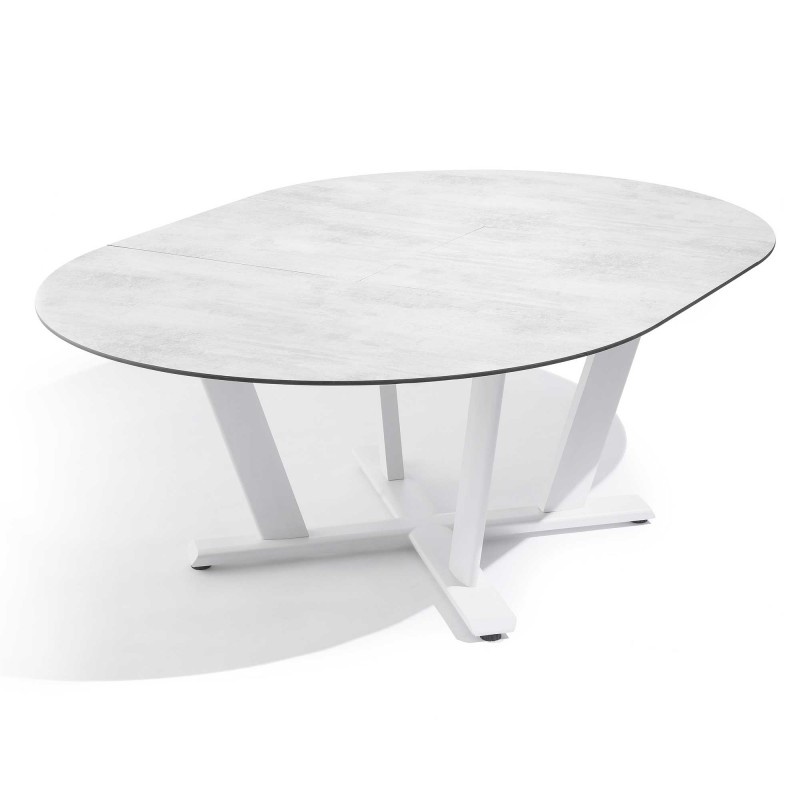 La table ronde Hegoa de la marque made in France Les Jardins a plus d'une astuce dans son sac et cache bien son jeu. Grâce au designer Jamie Durie vous avez la chance d'avoir une jolie table ronde qui d'un simple claquement de doigts va se métamorphoser en une grande tablée ovale par d'astucieuses allonges. Vous pourrez ainsi accueillir toute la famille dans votre jardin.