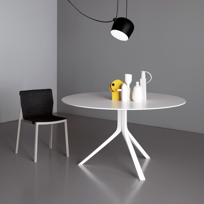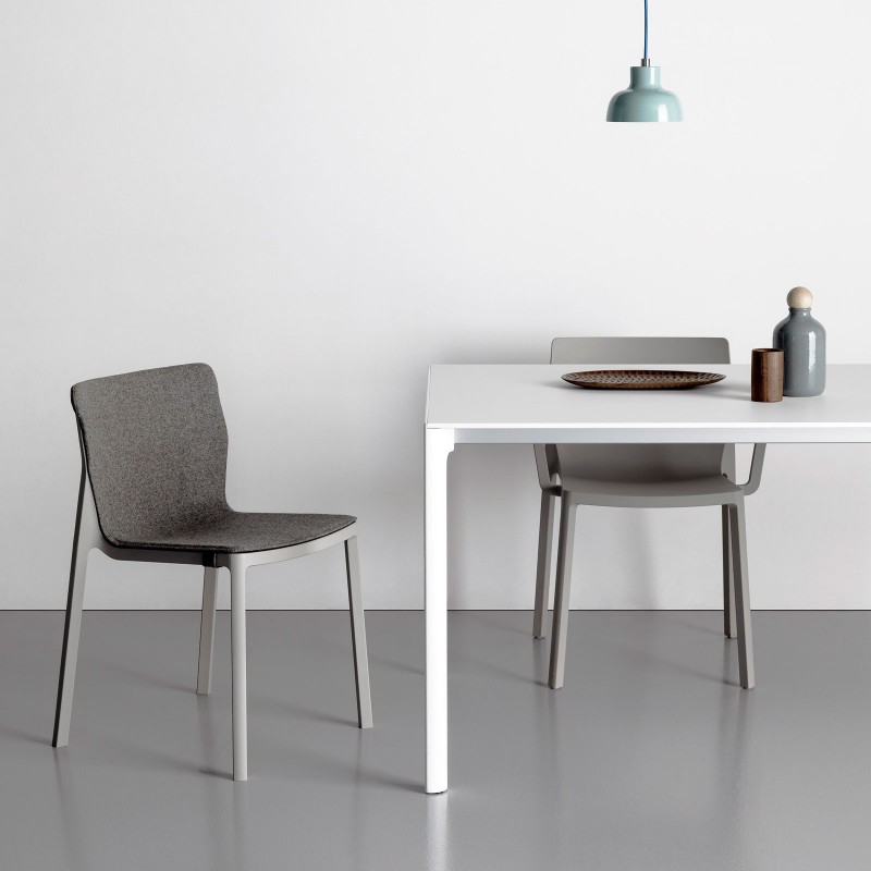 Caractérisée par l'étrange inclinaison de ses pieds arrière et une finition mate et soyeuse au toucher, cette chaise toute simple n'est pas que raffinement. Robuste et légère, elle est empilable et avant toute chose, très fonctionnelle.