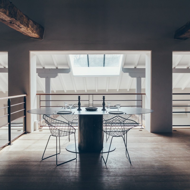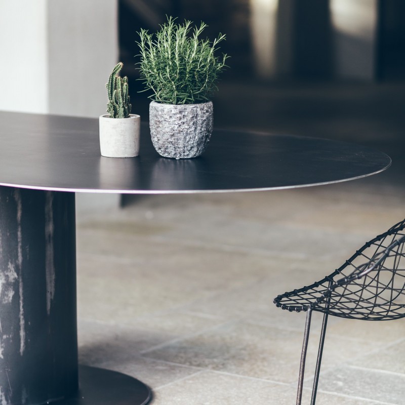 Industrielle et imposante, la Table à Dîner Hodeia et ses rondeurs donnent une envie irrépressible de la toucher.