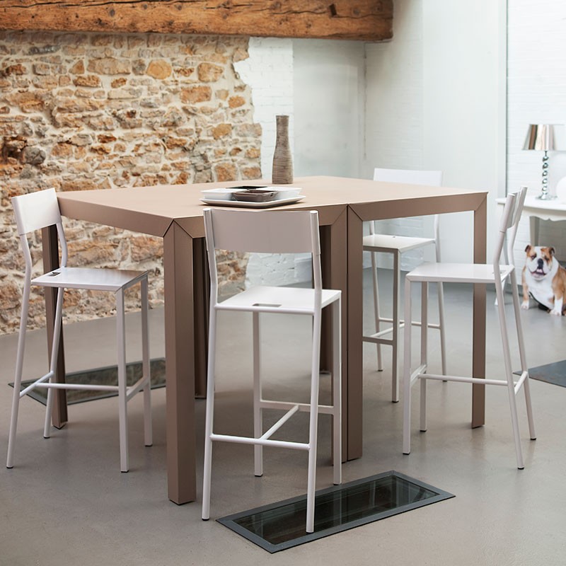 Le designer Luc Jozancy, pour la marque hexagonale Matière Grise, a su capter l'air du temps et le traduire par une haute table aux lignes sobres, rectilignes et à l'aspect indéniablement industriel. Les pieds peuvent être droits ou effilés.