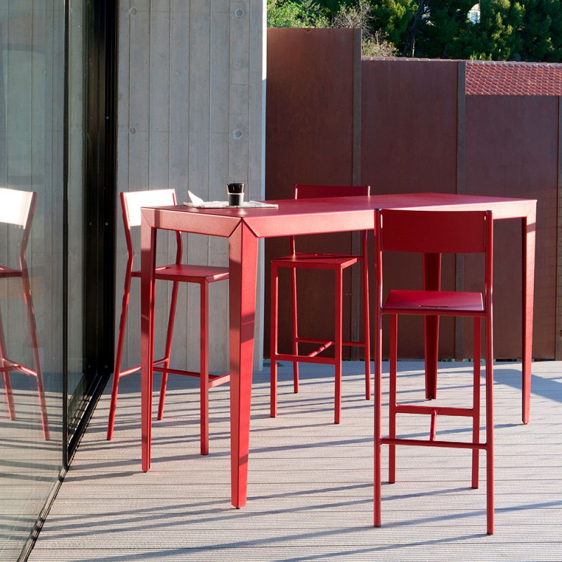 En associant une peinture poudre Epoxy à l'acier, le créateur a su donner au métal un aspect convivial où il fait bon se retrouver pour un lunch.