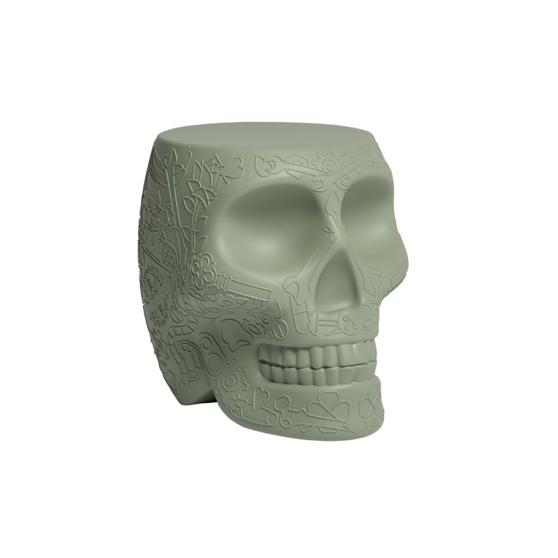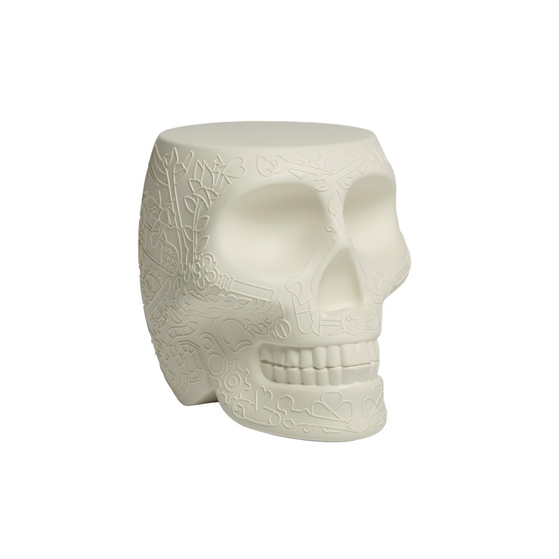 Outre son double usage, sa particularité réside dans son iconographie inspirée de la mort au Mexique. Les créateurs a l'audace d'utiliser des références mortuaires pour créer un meuble plein d'humour et de gaieté.