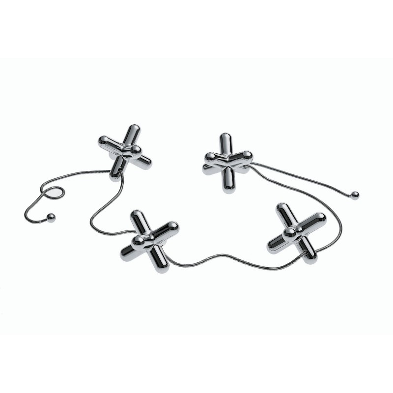 Son design sans précédent est une référence aux bijoux pour femmes et notamment le collier sautoir. Quatre éléments en forme de croix sont reliés par une chaînette qui lui permet de réduire ou d'accroître ses dimensions afin de s'adapter parfaitement à votre plat.