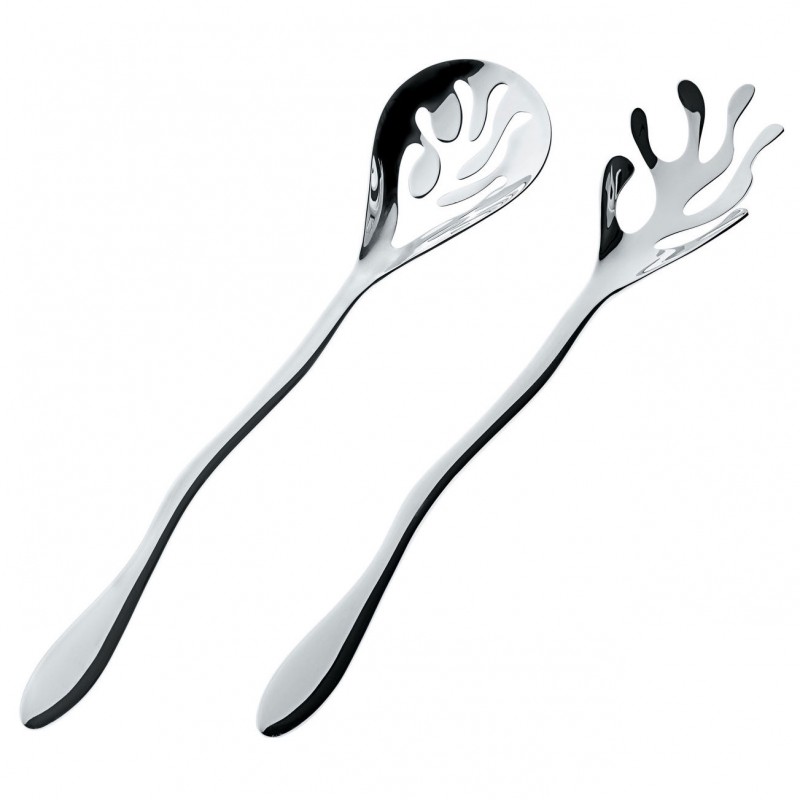 Les deux couverts représentent l'indolente danse des algues sous la mer. Dans la partie supérieure des couverts, un savant découpage rend la plante aquatique quasi-réelle et la fourchette semble être le positif de la cuillère. Aucun angle, aucune droite, tout n'est que rondeur et lignes courbes pour les rendre encore plus organiques.