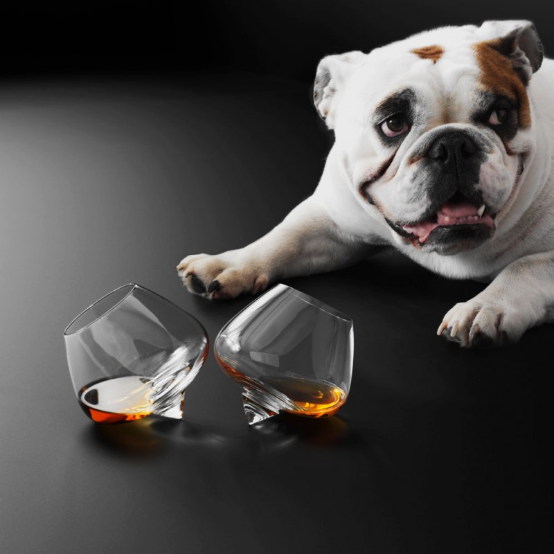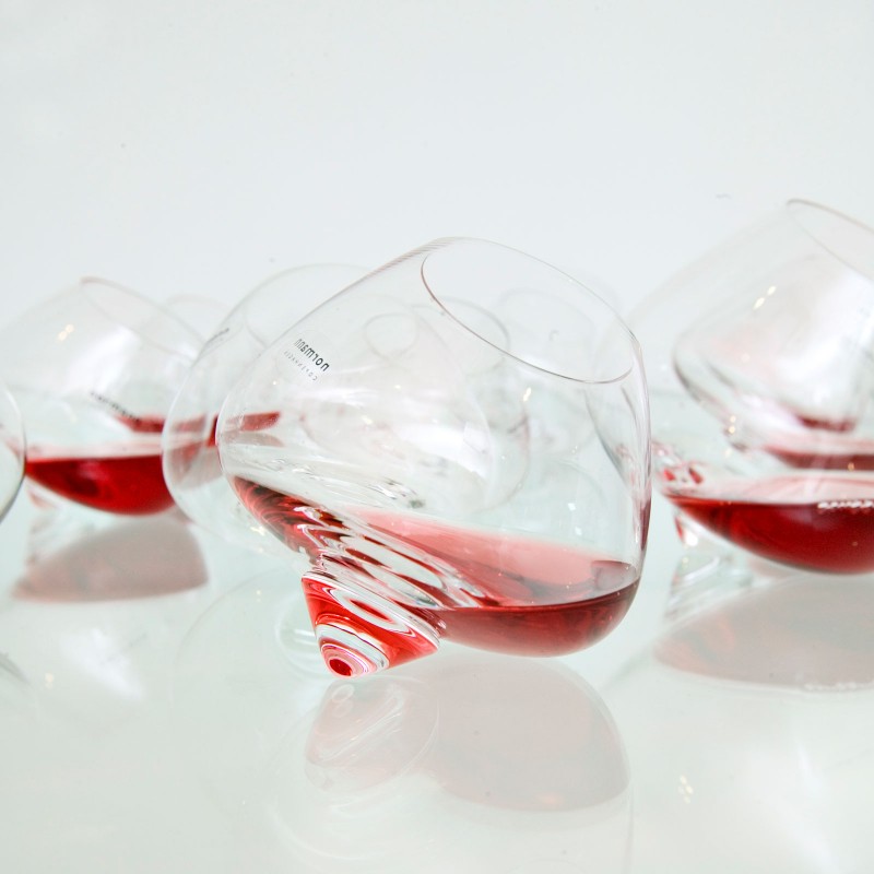 Rikke Hagen propose pour la marque Normann Copenhagen, deux Verres à Cognac originaux et tout en déséquilibre. La créatrice, diplômée de l'école de design danoise, mention verre et céramique, travaille sur la combinaison de la fonction et du pur plaisir.